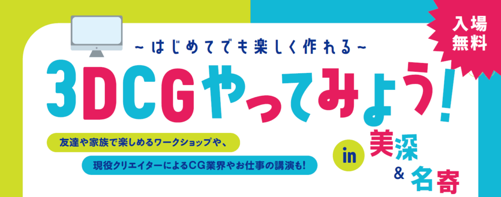 3DCGがどのように作られているか、体験しながら楽しく学べるイベントです。